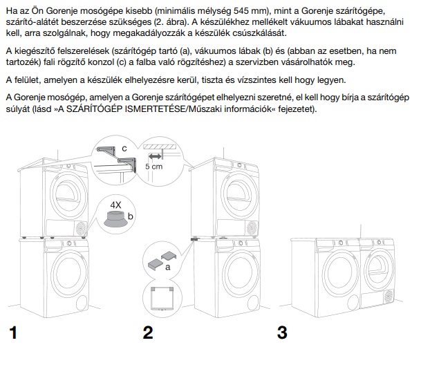 Gorenje mosógépek melyekre felszerelhető a tartó szett, hogy a szárítógépet tartsa.